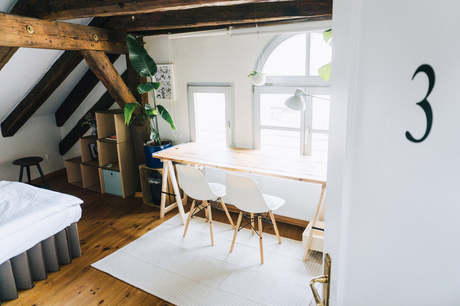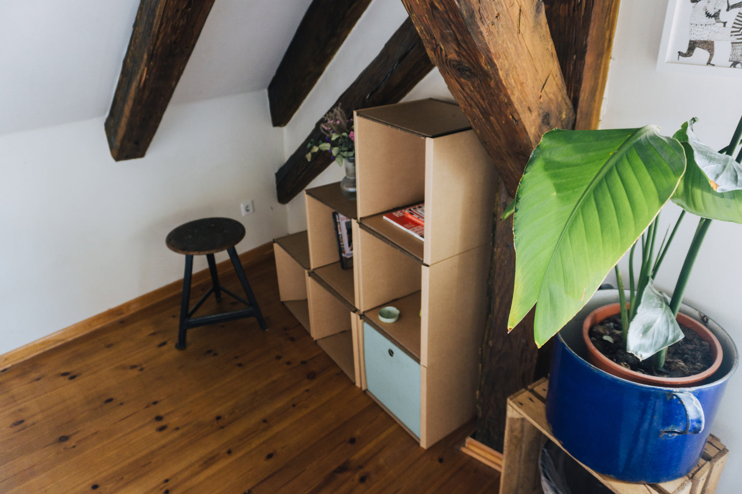 Die Einrichtung der Wohnung gestaltet sich größtenteils aus nachhaltigen Möbelstücken. Von upcycling Projekten bis zu Möbel aus Pappkarton ist alles dabei!