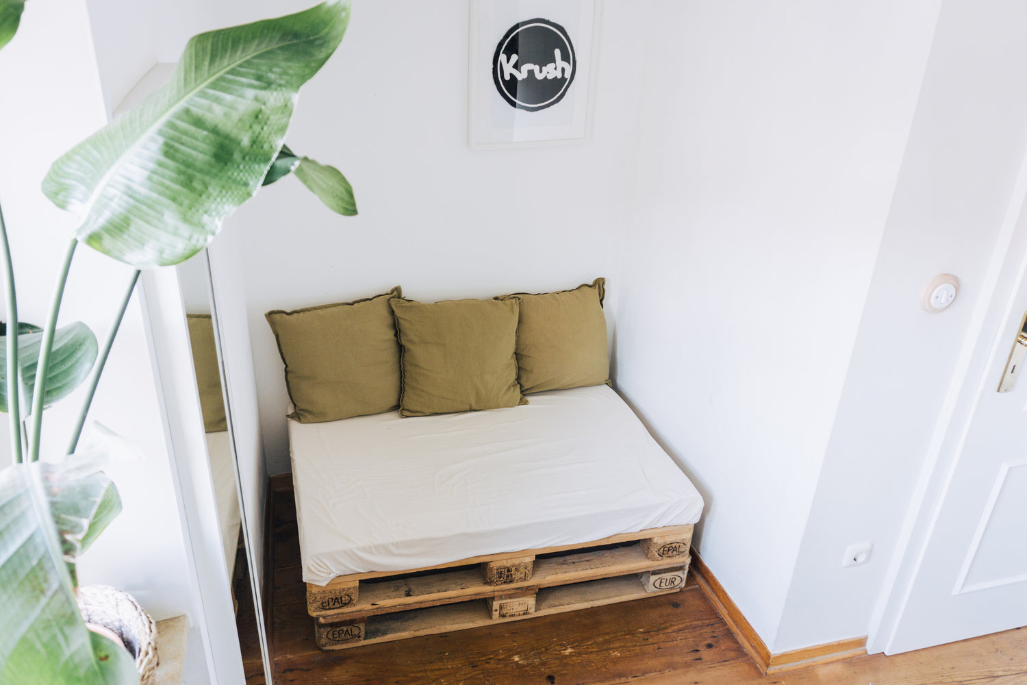 Die Einrichtung der Wohnung gestaltet sich größtenteils aus nachhaltigen Möbelstücken. Von upcycling Projekten bis zu Möbel aus Pappkarton ist alles dabei!