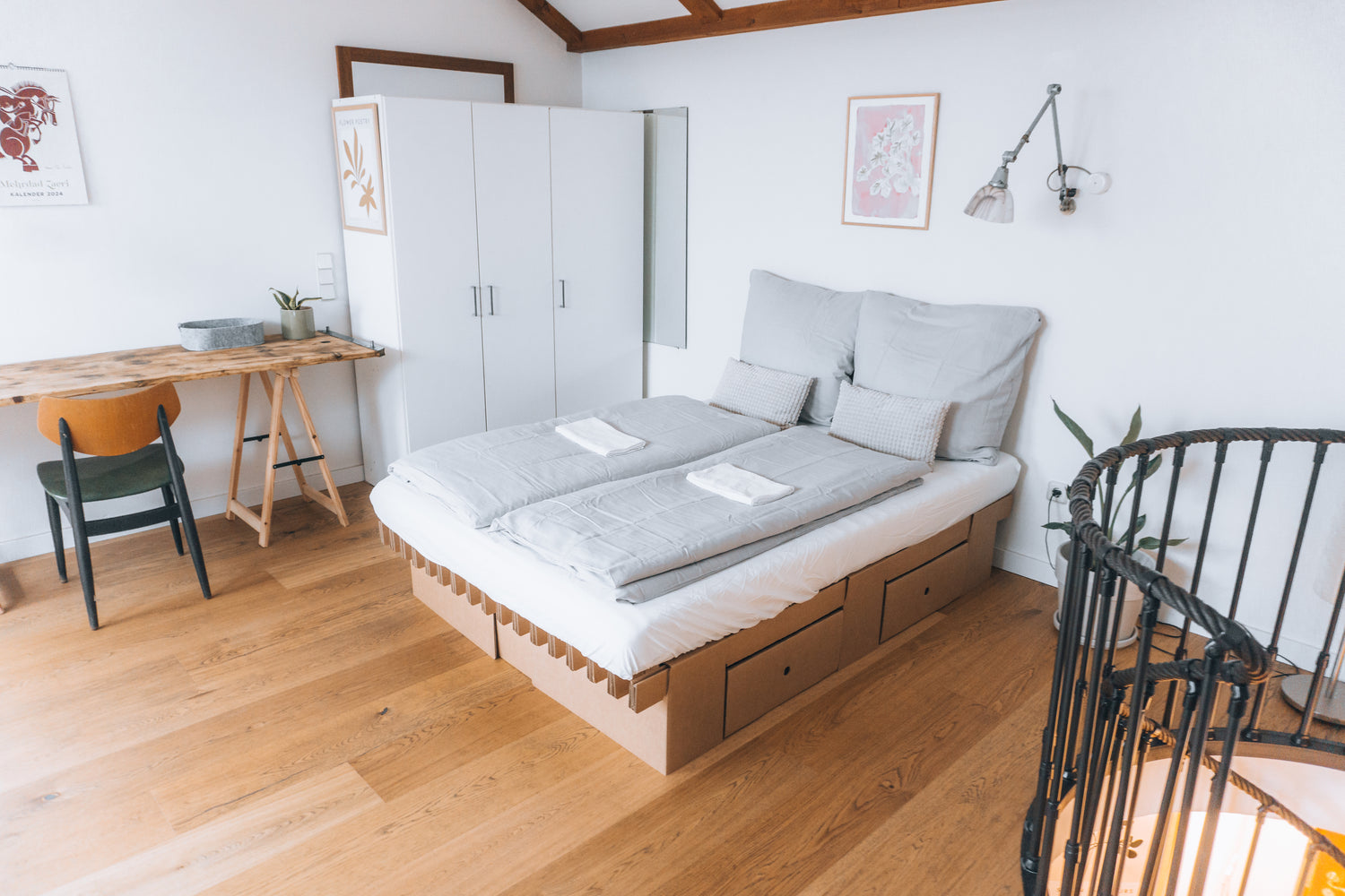 Die Einrichtung der Wohnung gestaltet sich größtenteils aus nachhaltigen Möbelstücken. Von upcycling Projekten bis zu Möbel aus Pappkarton ist alles dabei!