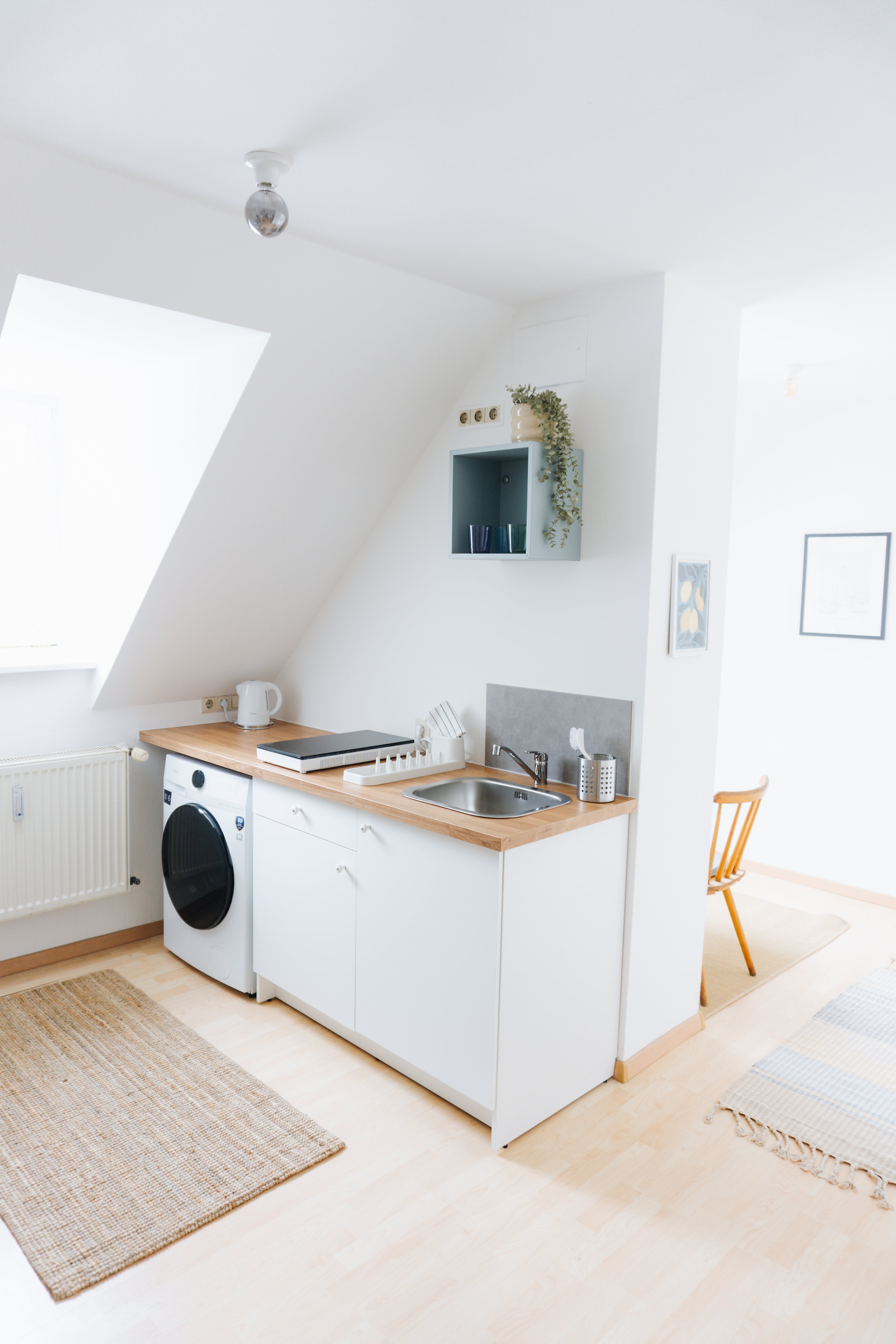 In der Wohnung an sich befindet sich eine vollausgestattete Küche mit Esstisch. Du bist herzlich eingeladen, die Küche zu nutzen und dir ein leckeres Gericht zu kochen.
