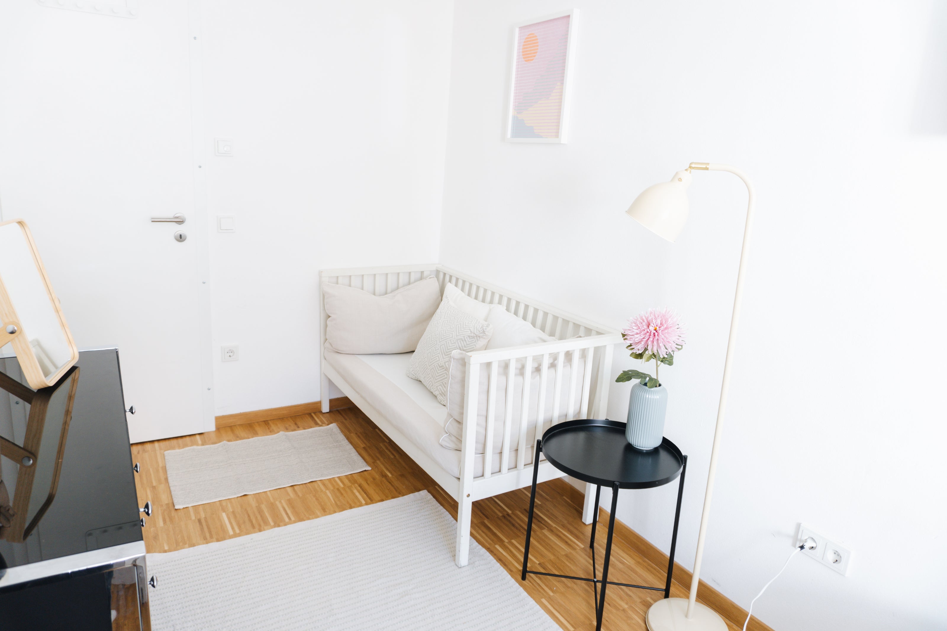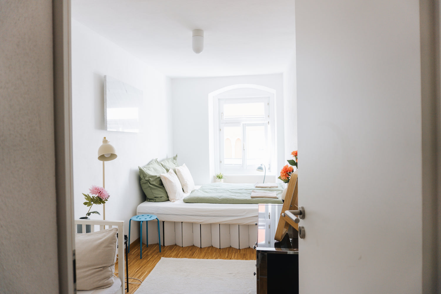 Helles Privatzimmer (ca. 13 m²) in einer frisch renovierten Altbauwohnung mit schönem Echtholzparkett. Modern eingerichtet, mit komfortablem Bett am Fenster. Küche und Bad sind neu und hochwertig, WLAN ist natürlich vorhanden. Gegenüber lädt das beliebte Café Rehorik mit Kaffeegarten zum Entspannen ein. Hinweis: Privatzimmer – Bad und Küche werden mit anderen geteilt, wodurch nette Begegnungen möglich sind.