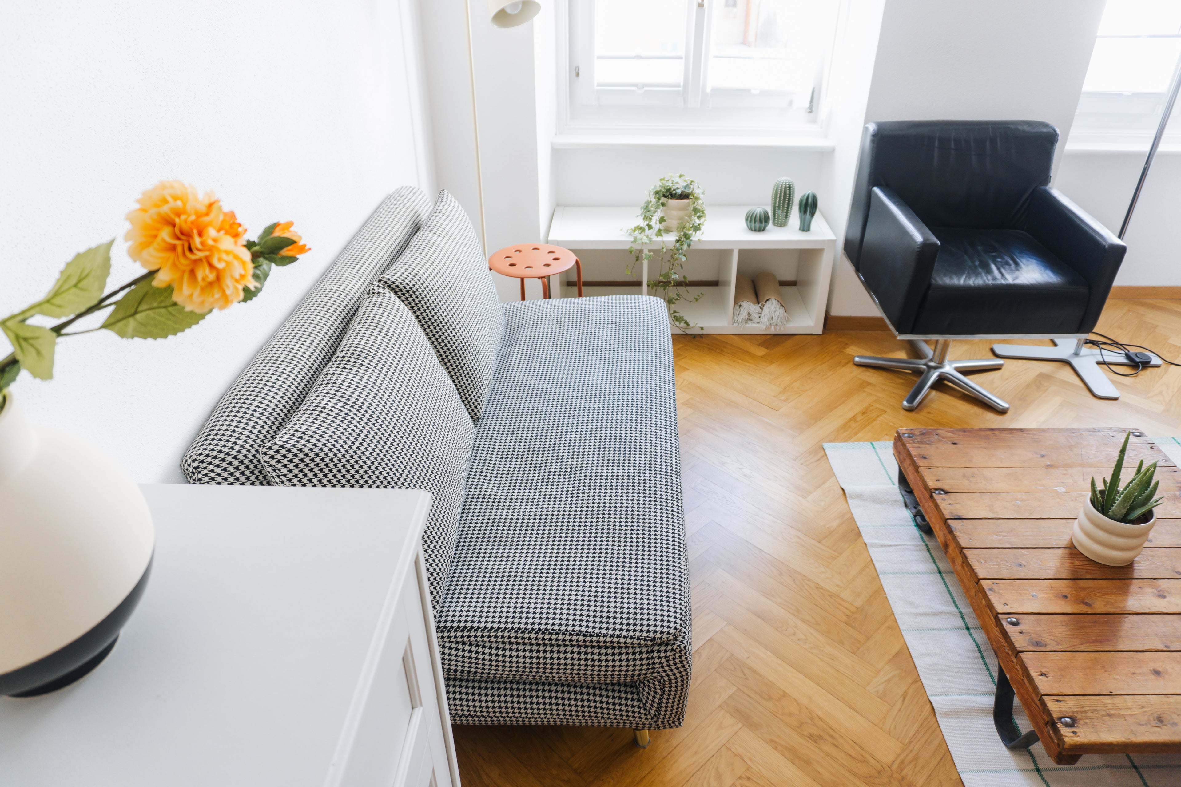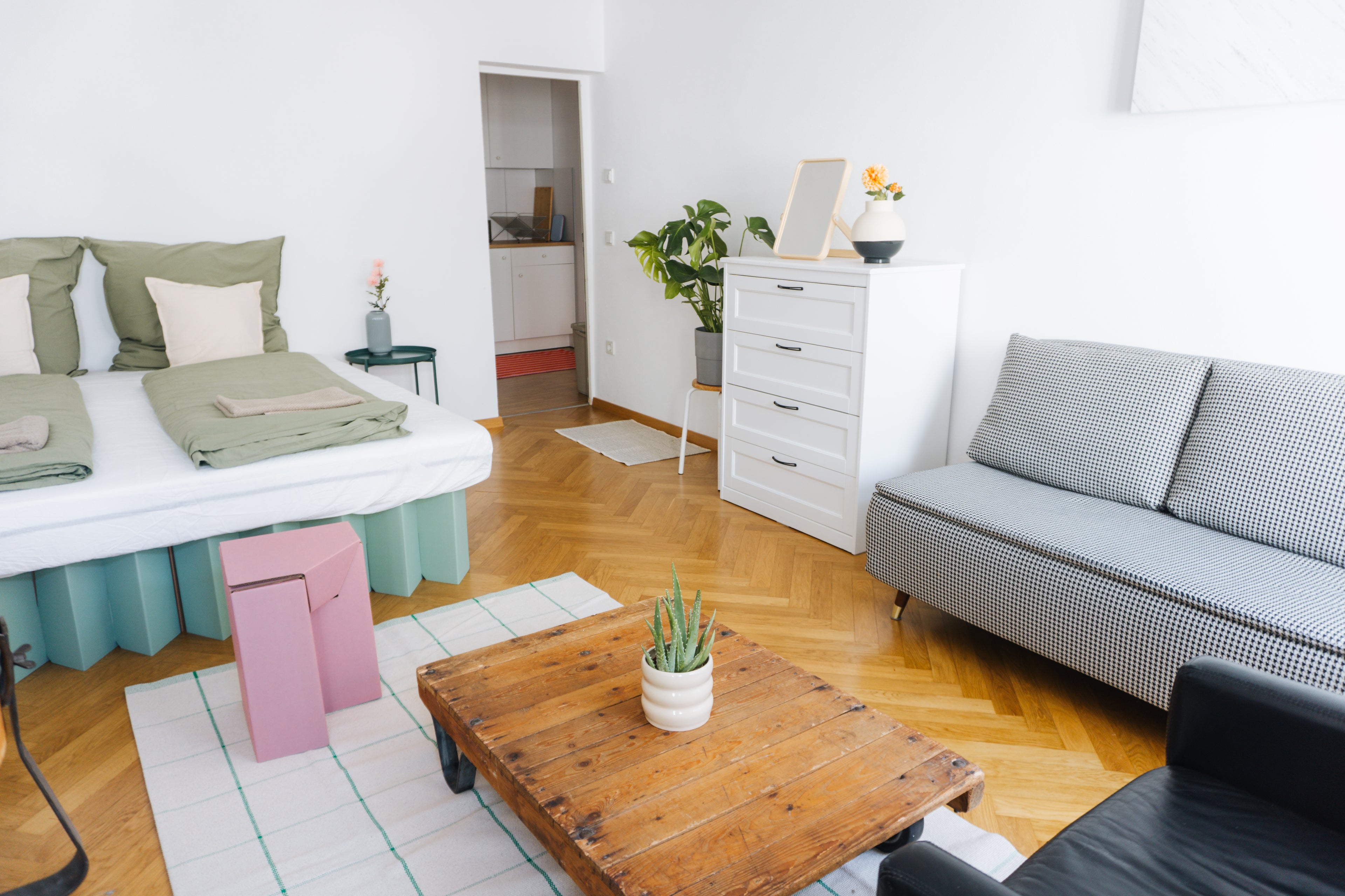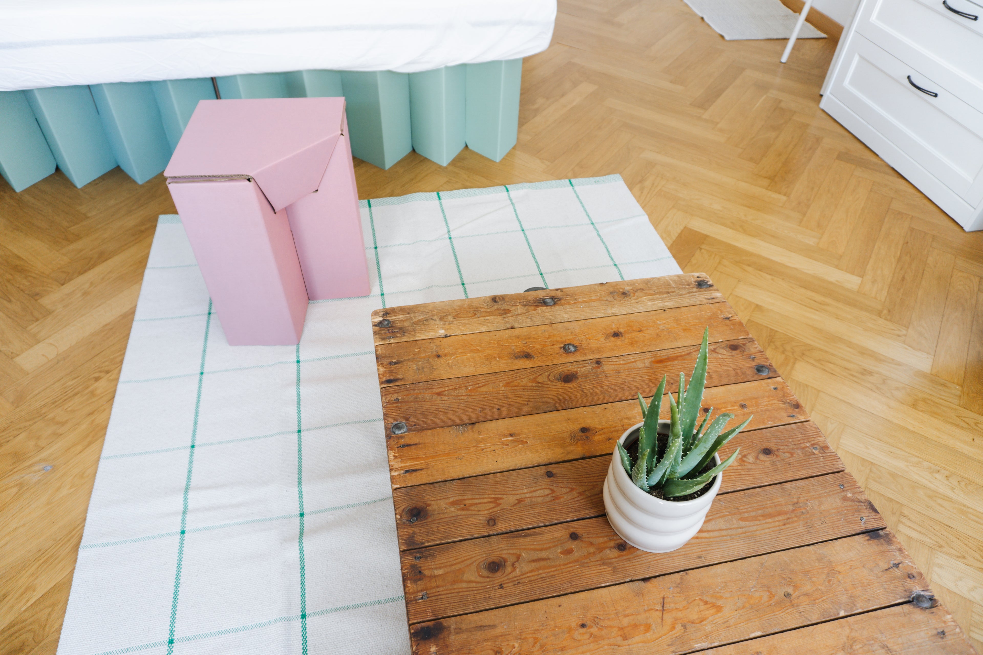 Die Einrichtung der Wohnung gestaltet sich größtenteils aus nachhaltigen Möbelstücken. Von upcycling Projekten bis zu Möbel aus Pappkarton ist alles dabei!